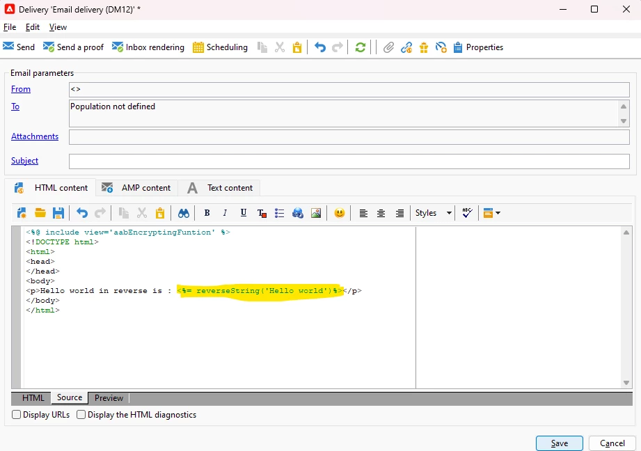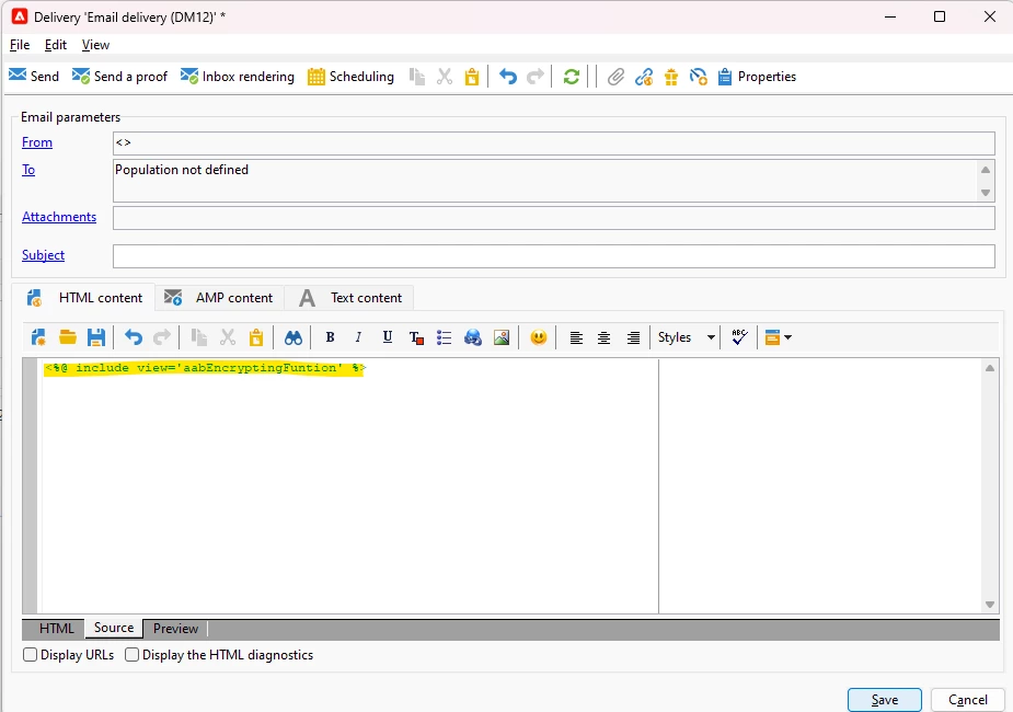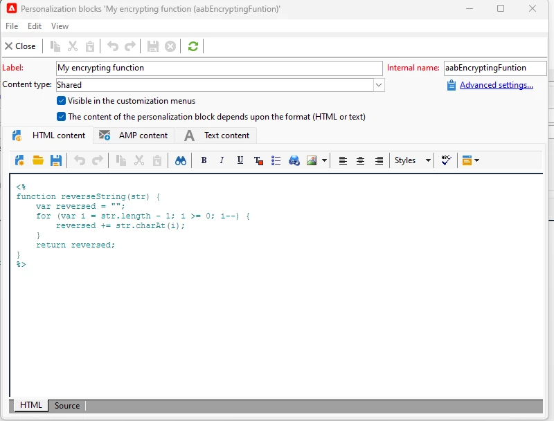 There is one piece of code which encrypts the URL and that is in JS. Basically want to include that in PB and ultimately include that PB in HTML so that it creates encrypted link for all the HTML templates. How we can achieve this.