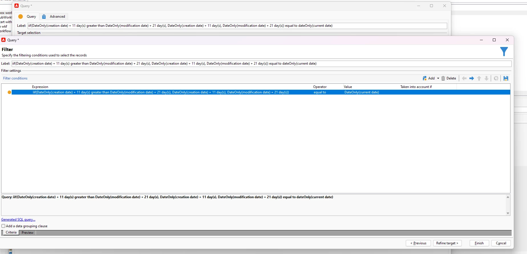I've set up a query activity to retrieve a group of audiences, and now I need to filter out the audience further based on the above conditions and qualified users need to be processed further in the workflow. I'm wondering if this filtering can be done directly through the query activity itself, or if I need to use a JavaScript (JS) activity instead.