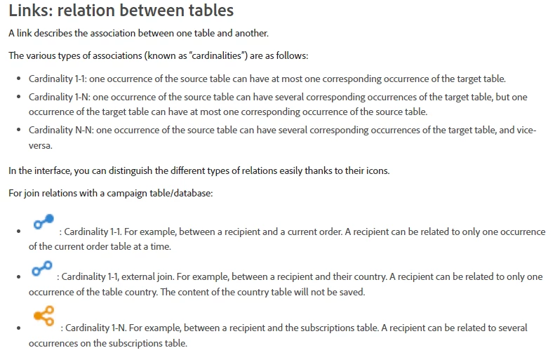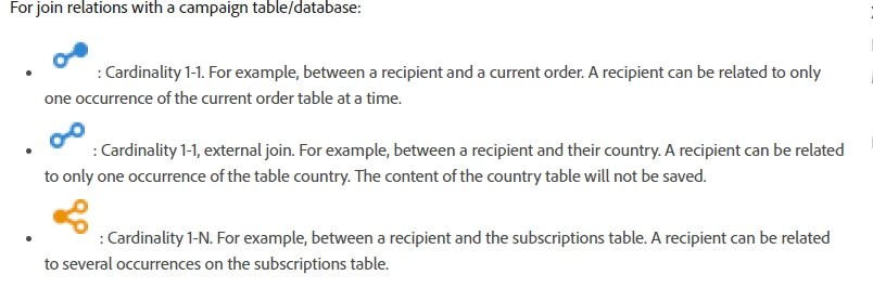 Could anyone please explain the differences between these two links in a query activity of adobe campaign classic.