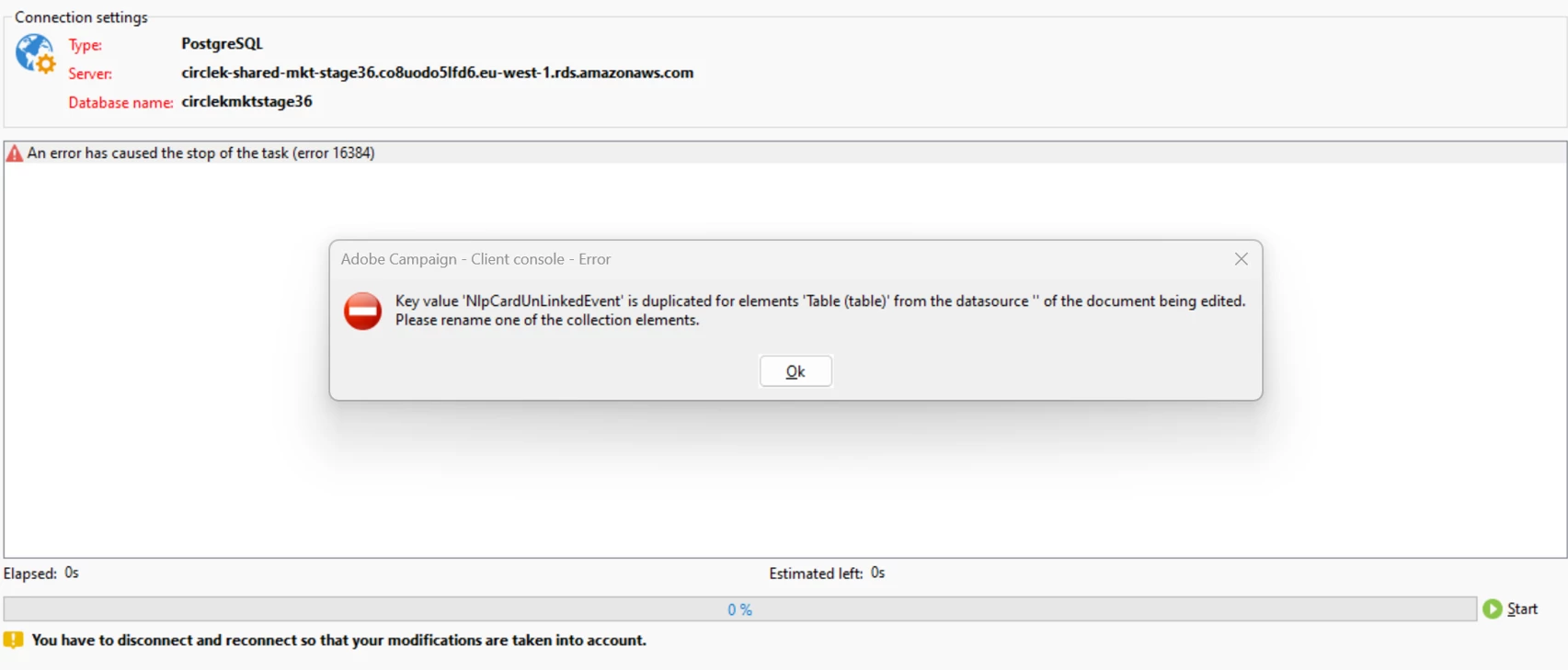 Also, while updating the database structure for any of the new schema in that instance I am getting below error.