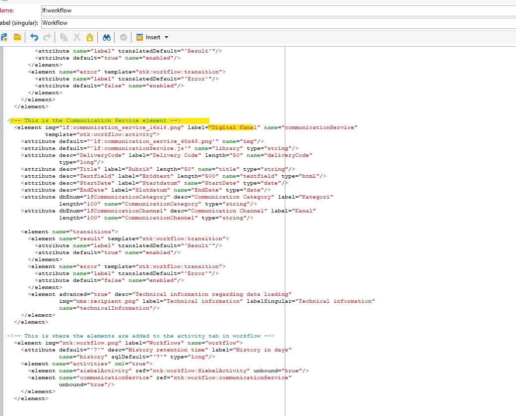 Extension of the workflow schema: