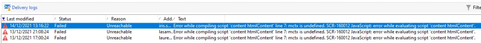 So the error "content htmlContent" means that something in your HTML is not correct. Usually this is because of a personalization tag error <% %> or and If Else statement in javascript. Can you share the code you are using with mctx?