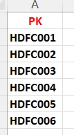 Primary key should be increment sequentially like HDFC001, HDFC002, HDFC03......