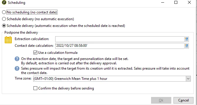 In the recurring email delivery I select a template and I want to set the delivery with the "Scheduling" option.
