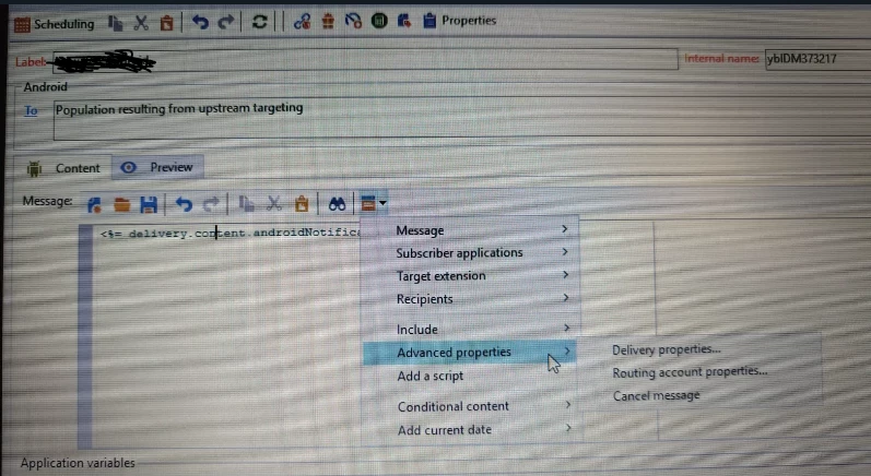 1. Open Adobe Campaign Classic 7 and navigate to the push notification delivery.
