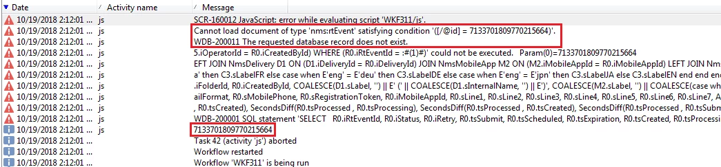 Relevant log data: