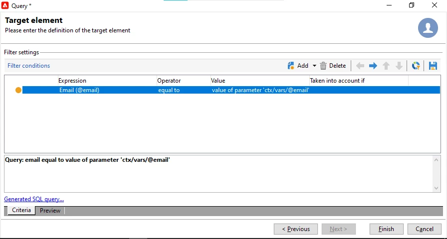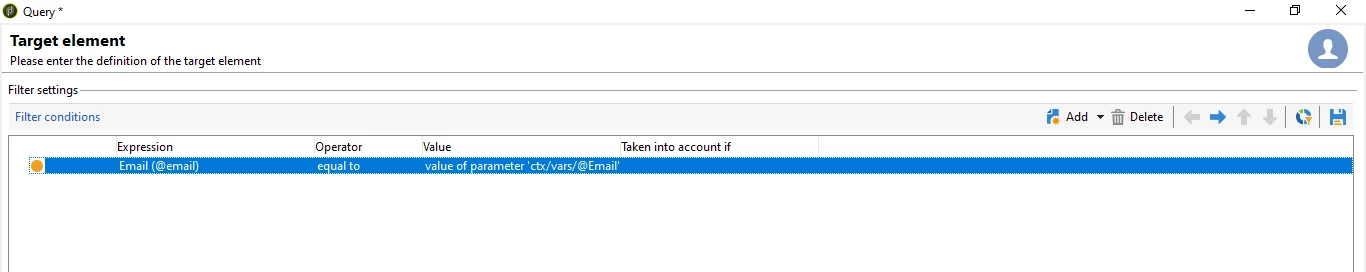 XTK-170018 Parameter of query 'ctx/vars/@email' is not defined in current context.