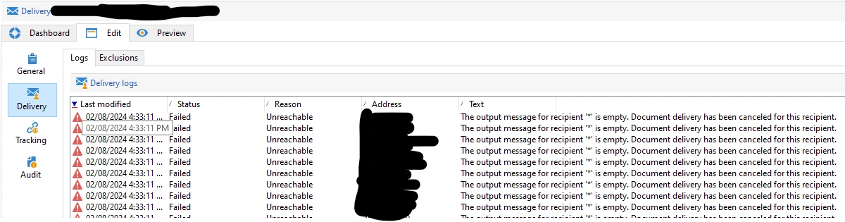 When triggering TM send-outs sometimes we get his error for every recipient in the target group: