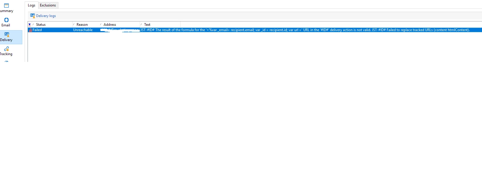 JST -#ID# the result of the formula for the '<%LoadLibrary('URL in the '#ID#' delivery action is not valid . JST-#ID# failed to replace tracked URLs (content htmlContent)