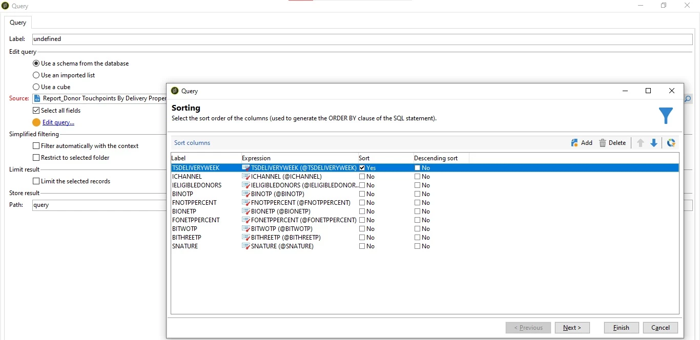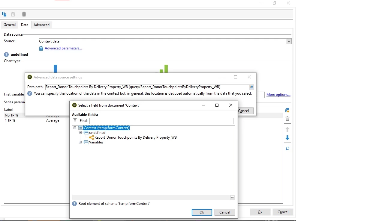 - Define data within the histogram based on the context data (screen Shot 3) - [query/Report_DonorTouchpointsByDeliveryProperty_WB]