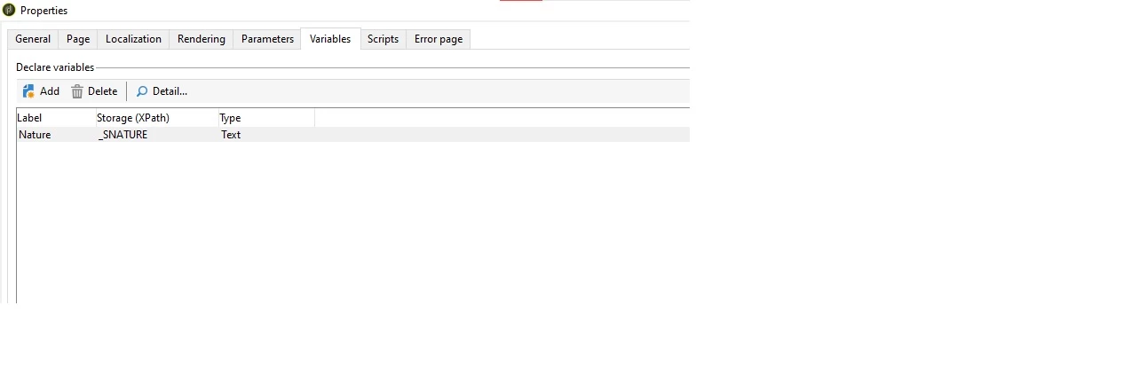 - Define the Variable in the report properties (screen shot 1) Name = _SNATURE from '@SNATURE'
