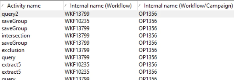 The only place I know of that has this detail is the memo field on xtkWorkflow and it doesn’t seem possible to parse this the way we need to - to be able to find the word in the data and then the corresponding activity name/label