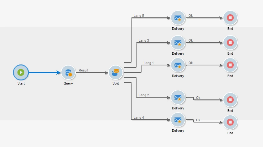 "I've a list of Recipients with different languages. I loop at them and, for every one, I use an If to select one template name or another. After it, I send it to the delivery activity to have one kind of email or another. "