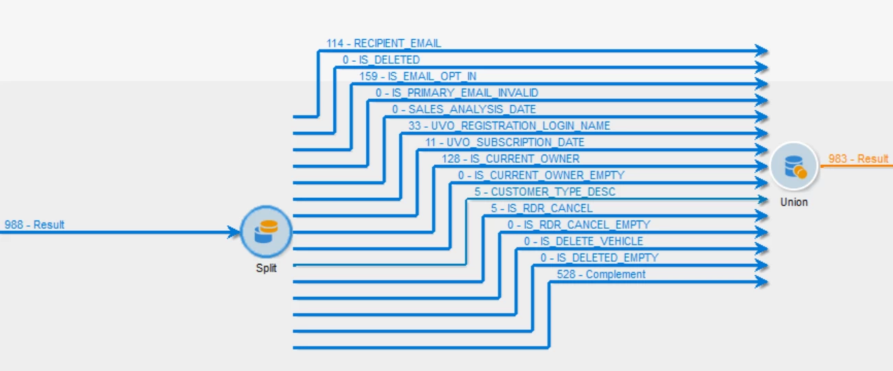 I've observed that when using a split condition, 1308 records were initially sent into the split. After configuring multiple conditions within the split, including checking the "generate complement" option, I now receive 1303 records. Upon manual inspection, I tested the missing 5 records bymanuallyu sending them through query & split activity: 4 are found in the complement and 1 was filtered out by a condition. I'm curious why these 5 records are missing, as when I manually send them through a query & split activities, I see the data coming through, which isn't the case for many other records.
