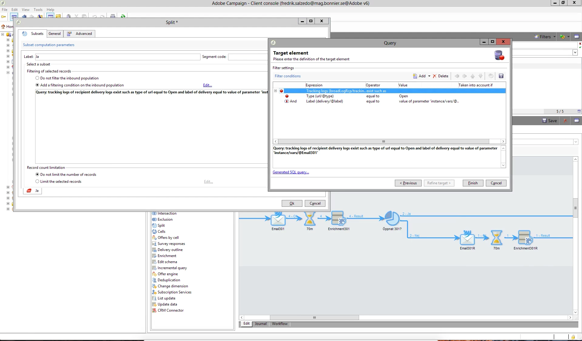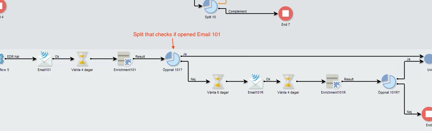 But, it is not working, everybody goes into the non opened part of the split and our Adobe Consulting company says it is because when you play the workflow, it the data you have at that moment i Recipient Delivery Logs that are used in the splits later on. But since the Email nr 1 has not been sent at that moment when I play it, the Recipient Delivery log is empty, therefore everybody goes into the "not opened Email nr 1" part of the split later on in the workflow.