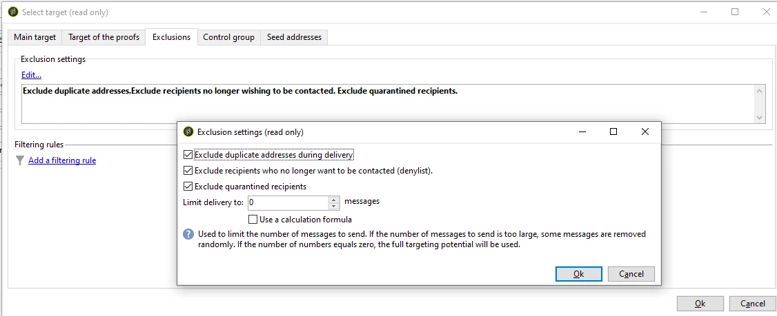 Background: I want to insert a master control of 5% for all email communication and I would like to insert it as a SQL based rule in typologies.