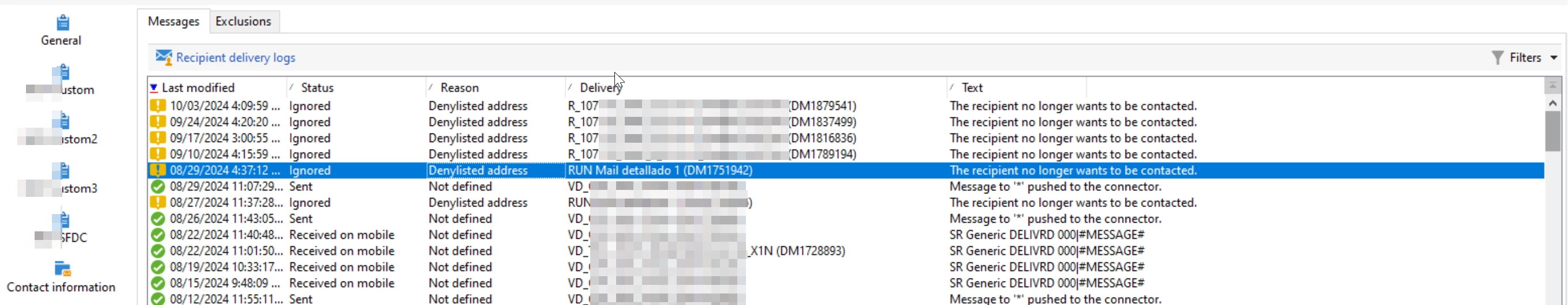 In the recipients manu, I see this particular recipient, in the Deliveries tab has: "The recipient no longer wants to be contacted" for all the email deliveries.