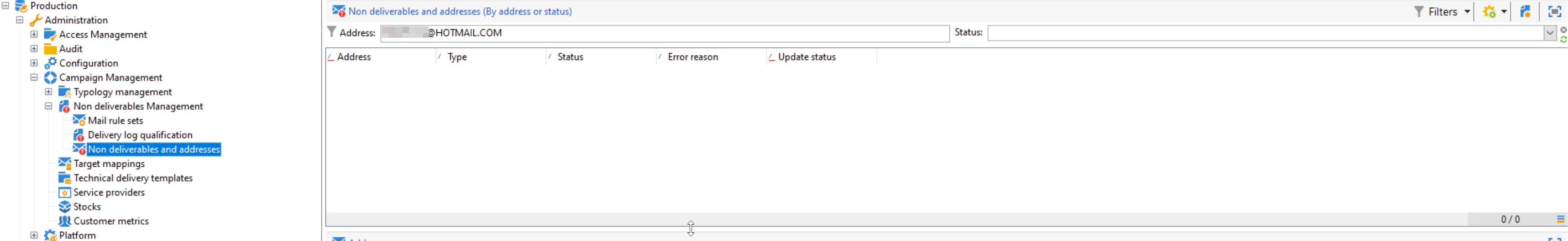 However, in the "Non deliverables and address" section, I cannot find this user by email.