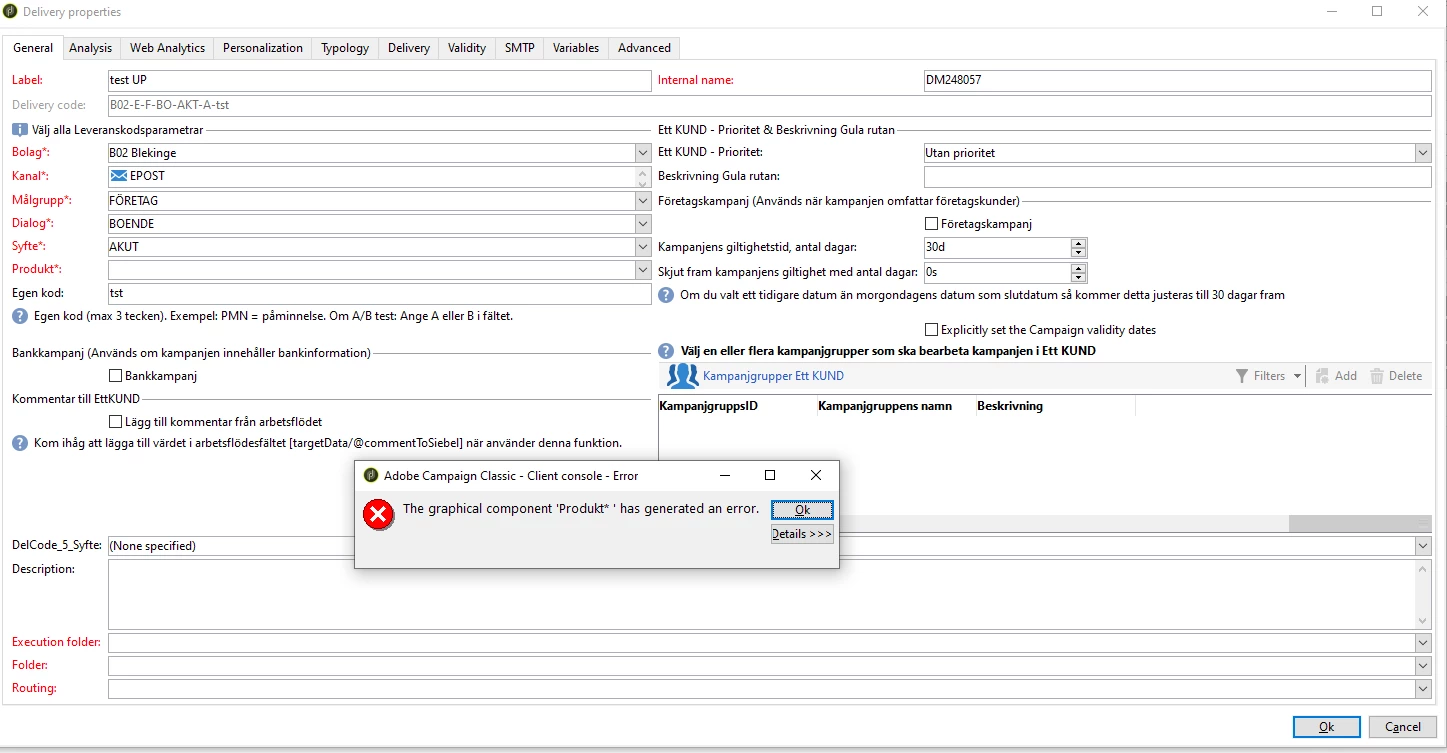 I ve been trying to create a validation for a field consisting of drop-down button/enumeration with 5 options. The goal is: if a user creates a new delivery template and leaves the field empty then an error message must pop-up once user tries to press the save button. So far i haven't been successful tho. here is the relevant part of the form.