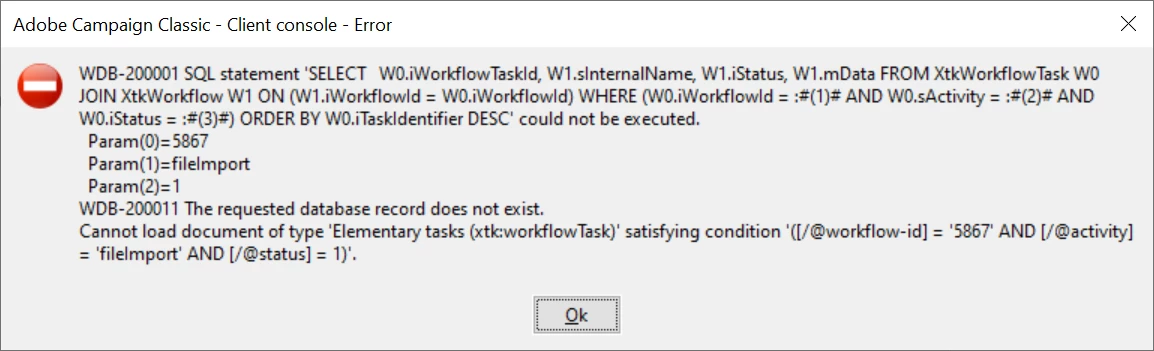 WBD-200001 SQL statement 'SELECT W0.iWorkflowTaskId, W1.sInternalName....' | Community