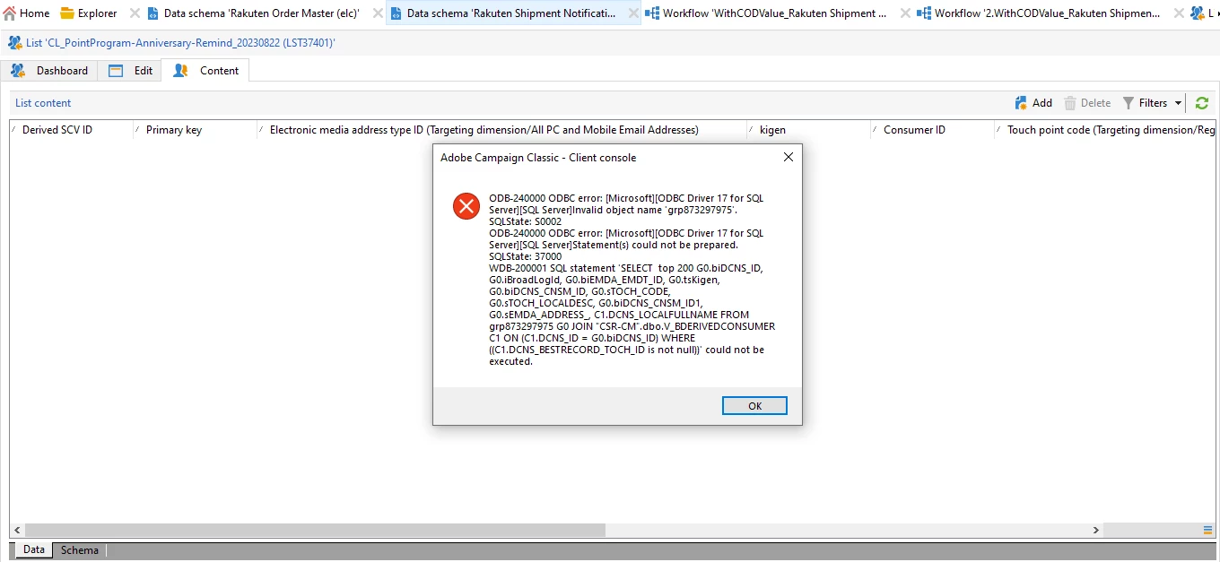we are not able to acess List data in adobe campaign