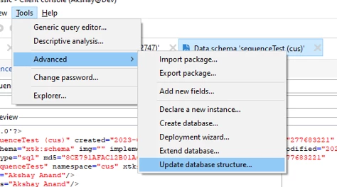 drop sequence auto_cussequenceTest_seq; --(dropping the Sequence of the custom schema created at the time of DB update, you can find it in the preview tab of the schema);