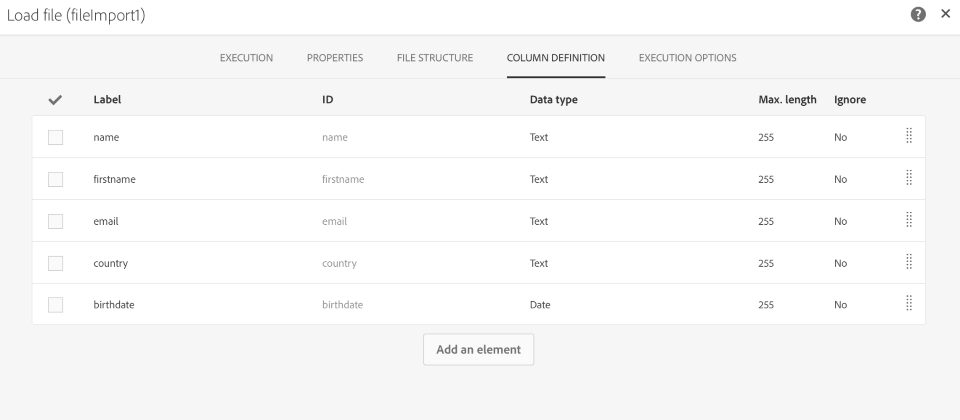 Now, I show you an example. I'm going to upload a csv file which looks like that: