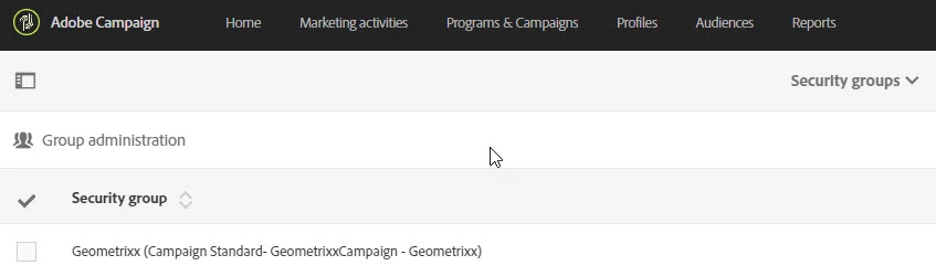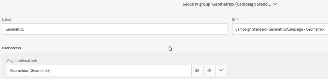 I have activated in Custom Resources the option "Add access authorization management fields", I have set the organizational unit, I create the security group in Admin and in Adobe Campaign with the same ID.