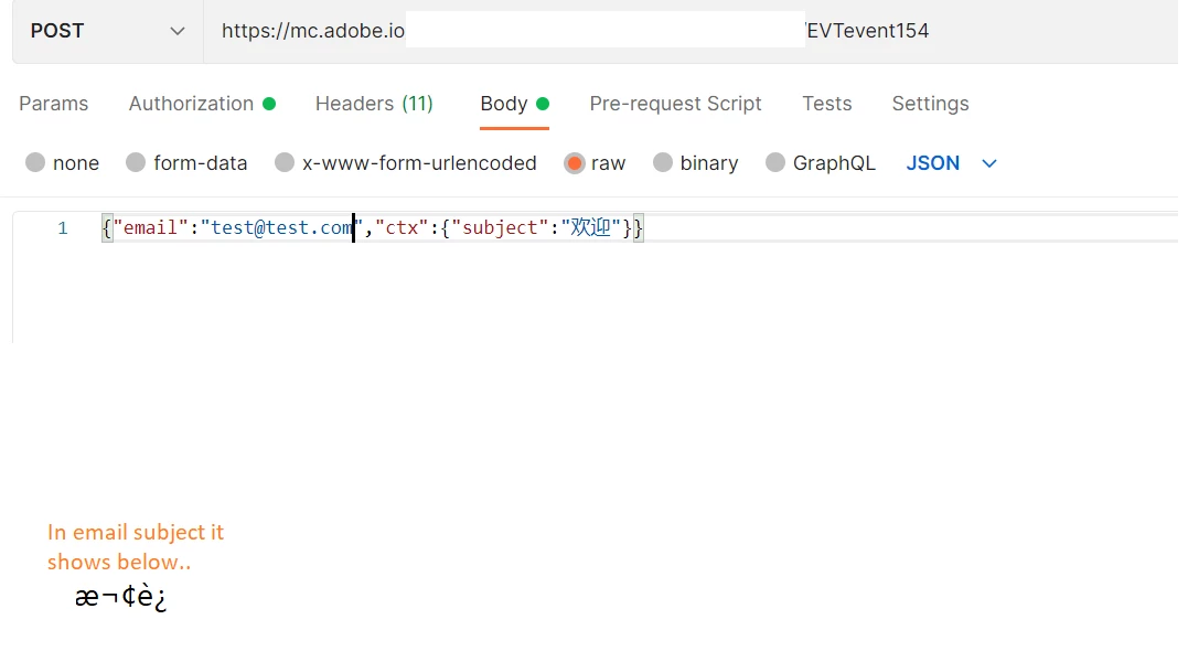 The non-English text is sent as a value for field in Realtime Transactional Event. this field is used in the email subject as a personalization value, but we are seeing gibberish in the email subject sent by that Real-time Event in the actual email..