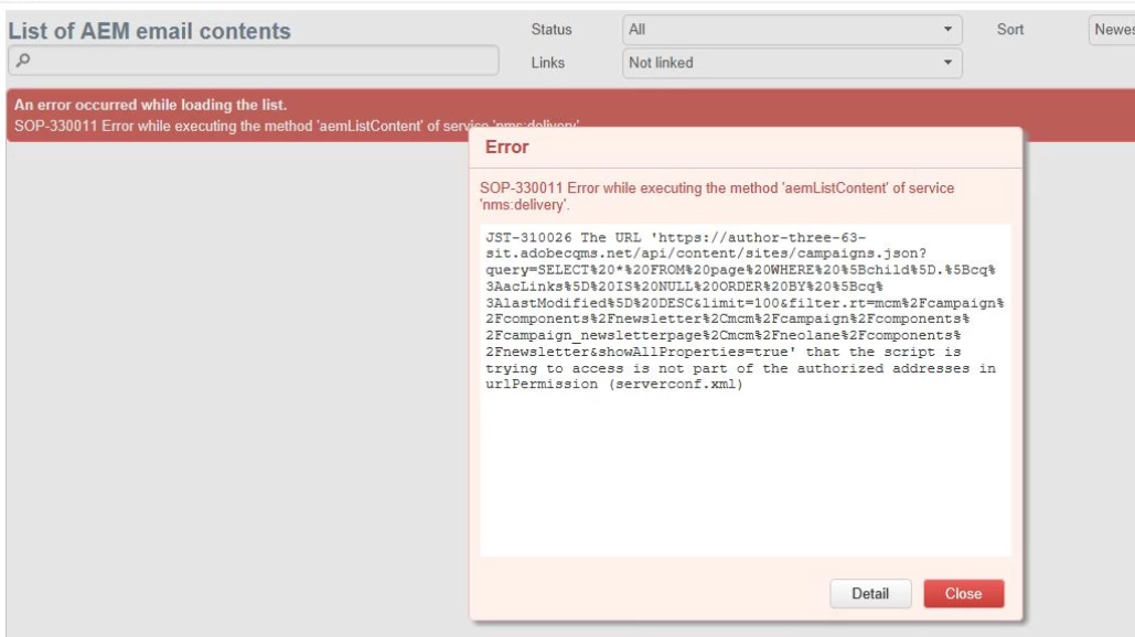 I'm having trouble synchronizing the email content from my AEM instance (6.3) to Adobe Campaign v6 instance.