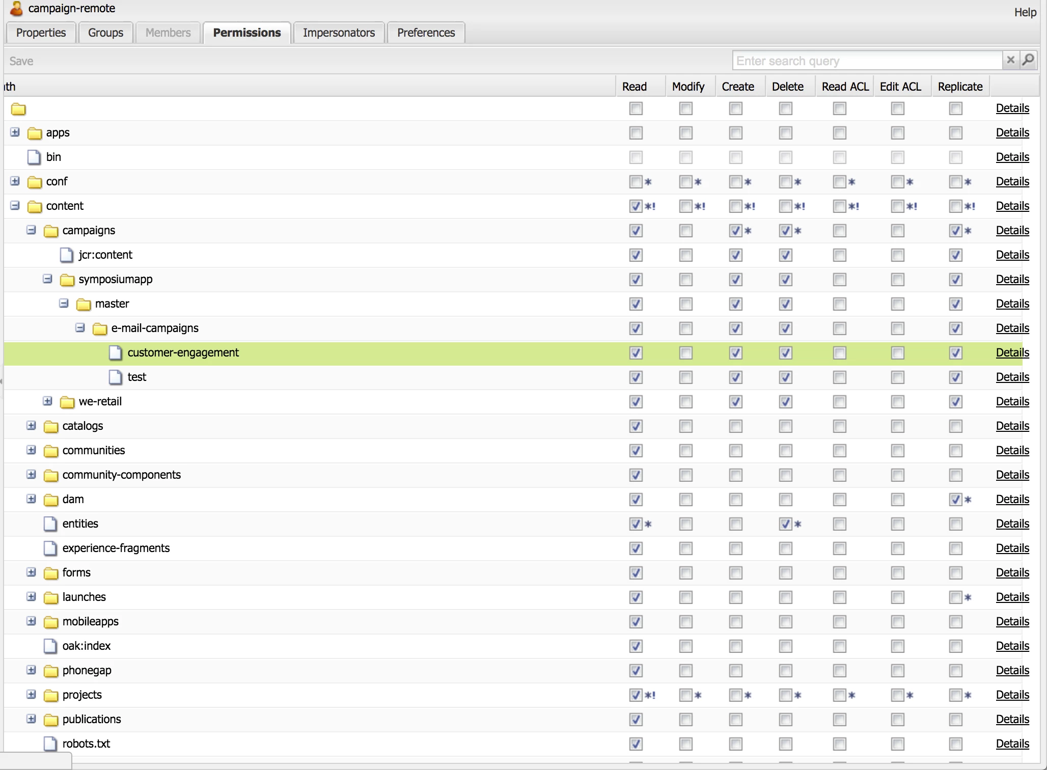 • In AEM, be sure that you set the password for the campaign-remote user. You need to set this password to connect Adobe Campaign with AEM. Log in as administrator and in the user administration console, search for the campaign-remote user and click Set Password.
