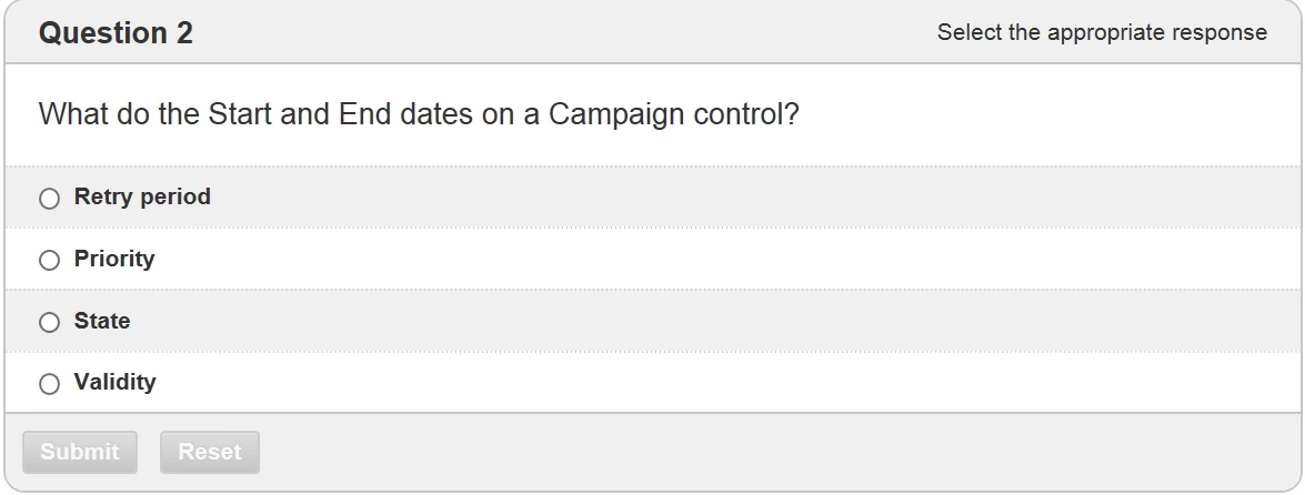 OK I see it now.  Was that information in the instructional video?  I also spent quite a bit of time searching the product docs and all of the course material I have and I did not find that answer.  Can you point me to where any of the materials mention what Start and End time affect?  I am not sure what Start and End dates does in terms of functionality since I believe you can still run campaigns after the End time specified if I remember reading correctly.