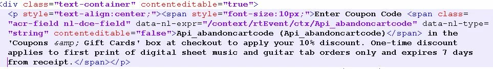The issue is when I use the payload and trigger the post api call, even though I have a value defined for the coupon code in my payload, when I get the email the coupon code is seen only in the main body of the mail and not the footer part.