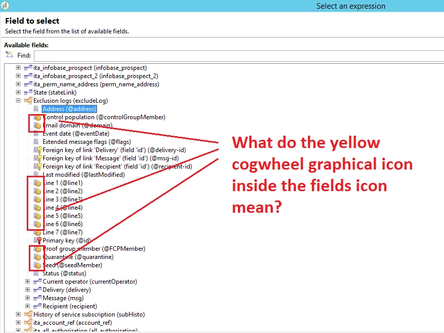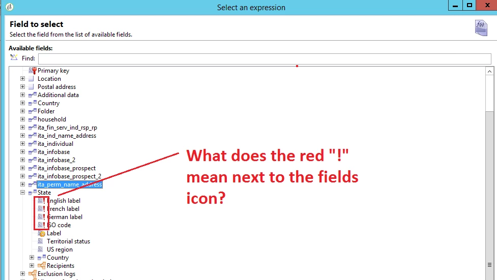 2. What does the red exclamation mark "!" mean inside the field icon?