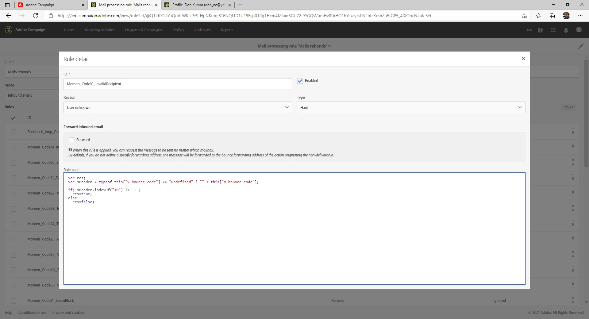 Administration/Channels/Email/Email Processing Rules/Mails rebonds