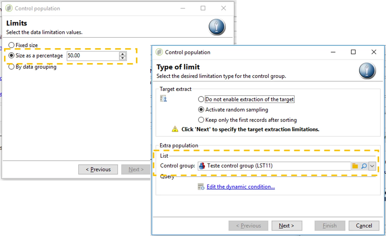 I set up a query with 4 clients (client 1, client2, client 3, client 4), I put a percentage in the control group of 50%.