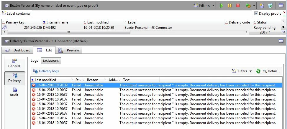 I'm trying to write a Javascript Connector in ACv6 to send messages to a REST service, that belongs to my customer, but It doesn't work. The below error message is shown in the delivery log:
