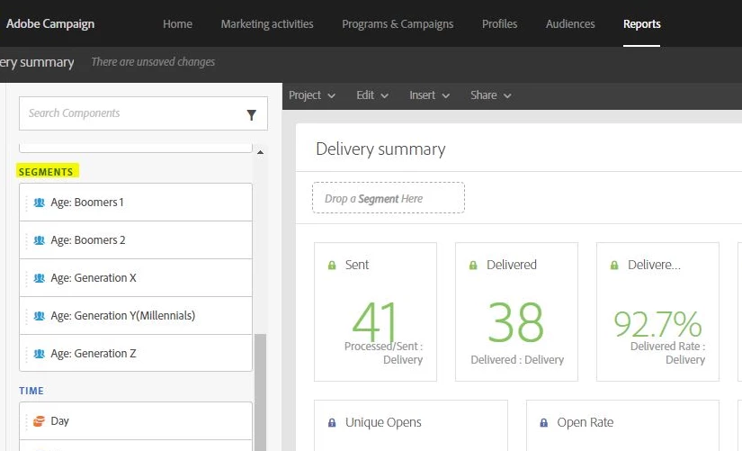How can we create custom segments to be included in our dynamic reports , is there any OOTB way available in adobe campaign standard?