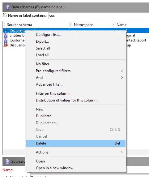 For example, I extended the nms:Recipient schema in my own namespace and added a custom attribute to it. Now I don't need the custom attribute. How can I delete it?