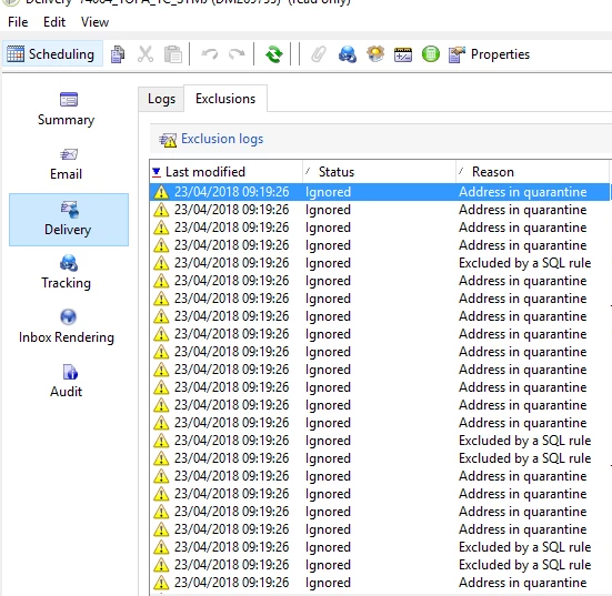 Deliveries not sent out because of quarantined emails