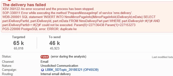 I see the following error, popping up in many of my campaigns. But when I recreate the delivery , it's sent out successfully. What could be the reason?
