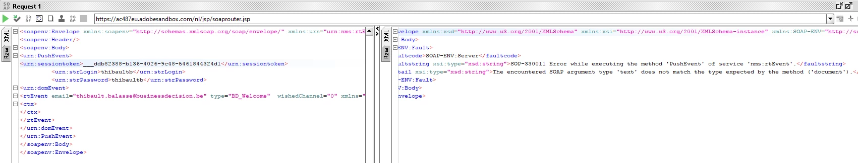 I first make a request to have a sessionToken that works fine with the ID and password of my instance of Adobe Campaign.