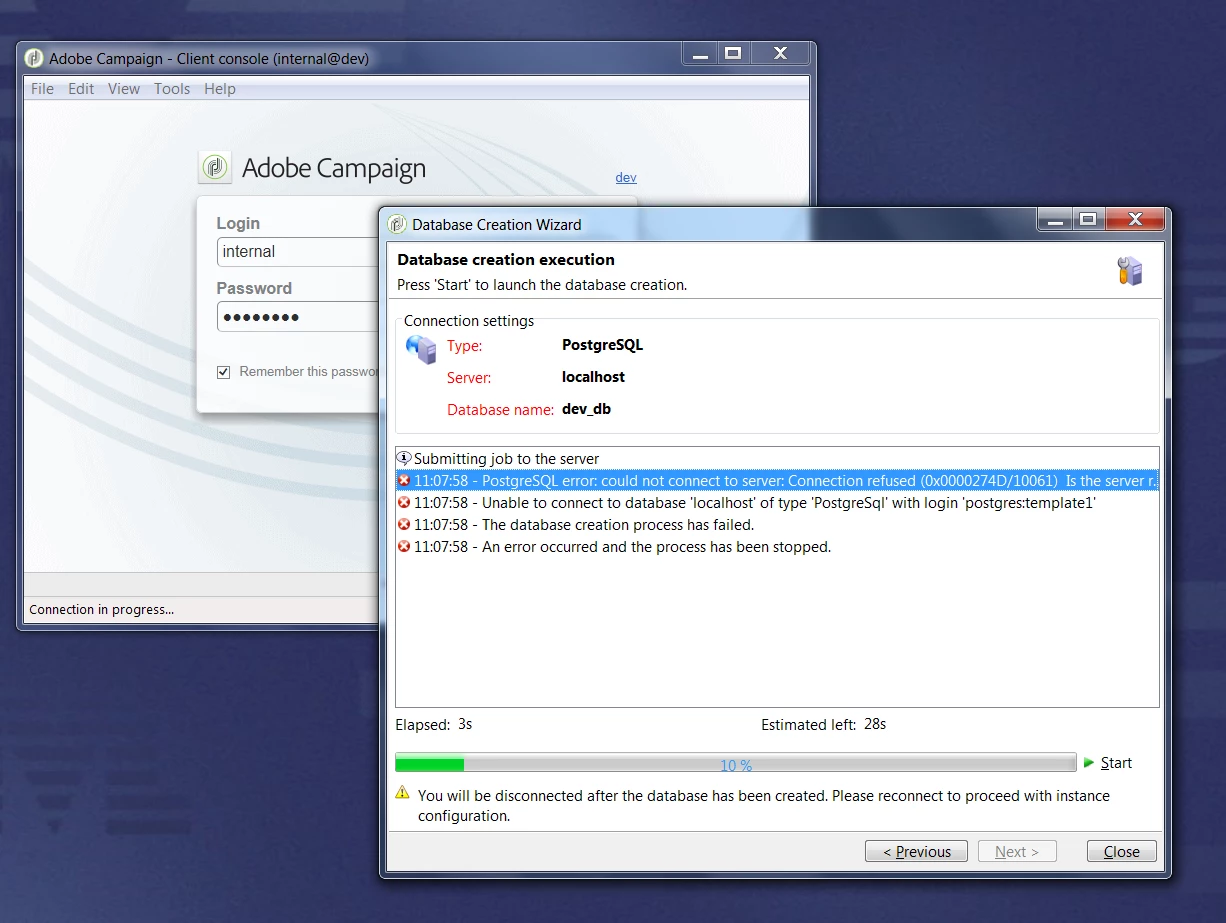 I have installed the Adobe Campaign client & have also integrated it with IIS. Also installed local campaing client console . I am facing issue with creating new connection