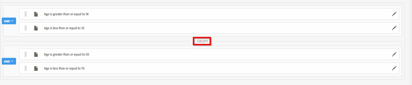 Hi! I created a query audience in an effort to test out the EXCEPT logical operator. I never have issues with adding or changing the AND or OR operators. However, when I add the EXCEPT, I can’t seem to figure out how to undo it and change it to a different operator again. Would love if someone could share how to switch it back, if at all possible. Thanks!