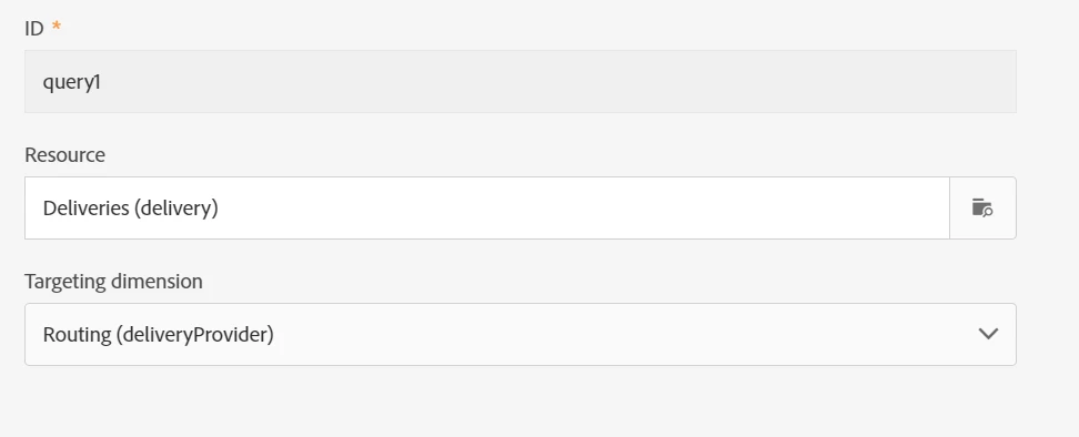 Set the resource as nms:delivery and targeting dimension as Routing(deliveryProvider).