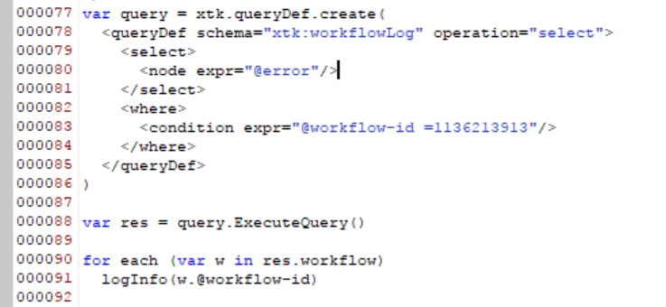 I am trying to extract error code & message from workflow log table for a particular wf using querydef but getting error.
