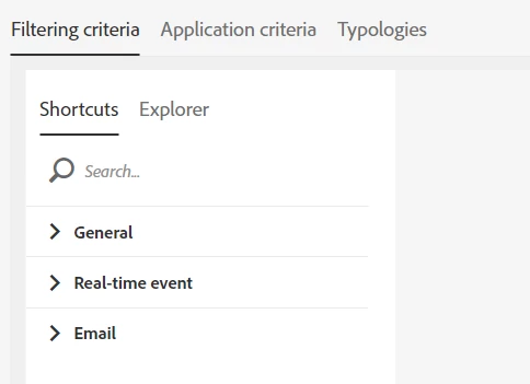 But this context is missing in Filtering criteria