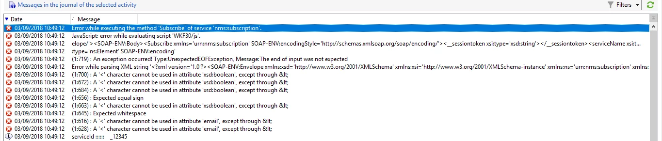 I have a set of recipient fetched through WF operation, I want to subscribe the recipient to a specific Service ID using OOTB Subscribe() in javascript activity within Workflow. I am getting below exception.