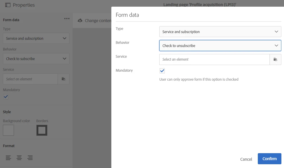 You can only unsubscribe from two services using an acquisition Landing Page.