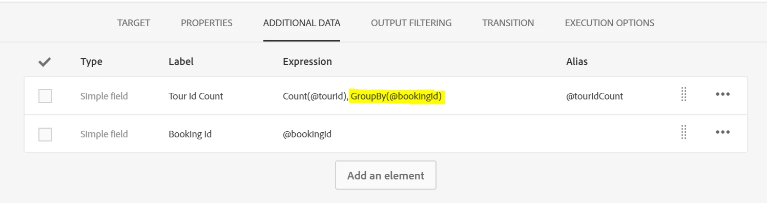 How to define an aggregation in ACS custom resource